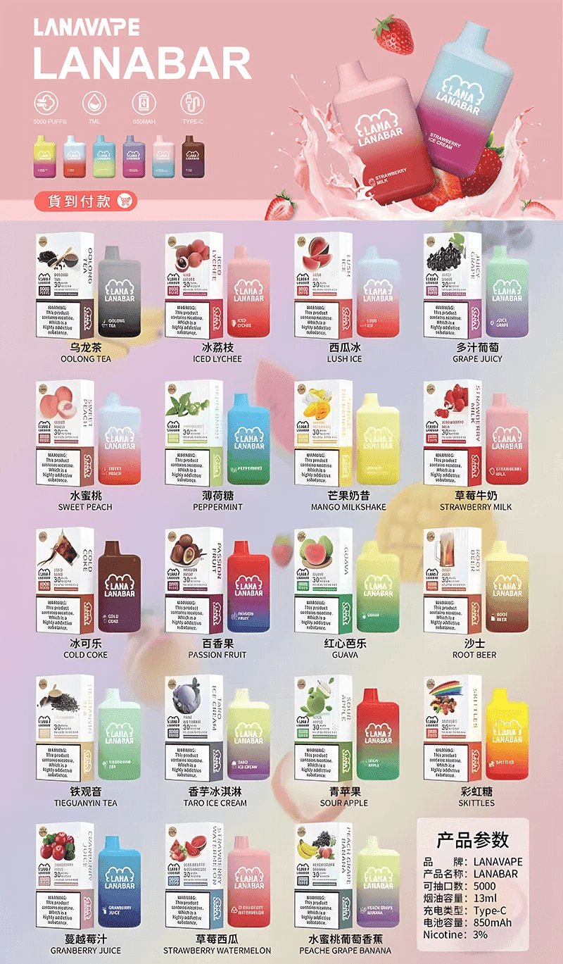 【一次性/拋棄式】LANABAR 5000 PUFF一次性5000口(3.0%) 13ml容量 可充電Type-C型
